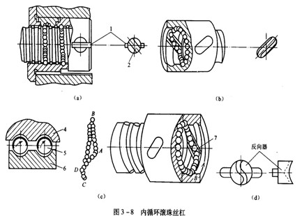 如圖3-8所示為內(nèi)循環(huán)滾珠絲杠。內(nèi)循環(huán)均采用反向器實(shí)現(xiàn)滾珠循環(huán),反向器有兩種類型。